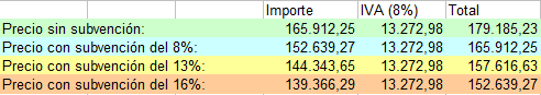 Conforme a los precios máximos y subvenciones del Gobierno de Navarra para VPO de régimen general del año 2009, se indican a continuación los precios de cada vivienda con garaje/trastero. Las viviendas (tanto las del tipo 1 como las del tipo 2) tendrán una superficie de 89,98 m2 útiles con un garaje/trastero de 39,40 m2 útiles. La aplicación de los precios máximos y subvenciones del Gobierno de Navarra para VPO de régimen general del año 2009 arroja los siguientes resultados: